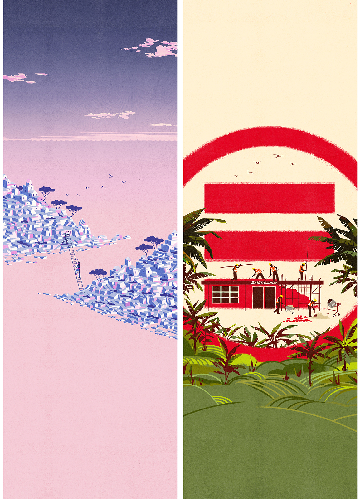 Francesco Bongiorni (Milan, 1984) creates impactful and conceptual images, interpreting and synthesizing complex ideas in an original way. Francesco produces strong and sophisticated illustrations, conveying a clear and direct message to the viewer. He speaks and works in three languages (Italian, English and Spanish) and splits his time between Milan and Madrid. His style is synthetic and direct, the result of his heterogeneous formation that includes Engraving studies, screen printing, comics and painting at the Academy of Fine Arts N.A.B.A. of Milan, the Universidad de Bellas Artes of Salamanca and the IED of Milan. Francesco collaborates regularly with: The New York Times, AC Milan, Air France, The Guardian, Washington Post, The Wall Street Journal, and Le Monde. His works are presented in the most important years of illustration as: Communication Arts, Society of Illustrators of New York and American Illustration. In 2018, “One Million Steps” illustration, created in collaboration with Illustri Festival and dedicated to a Doctors Without Borders campaign, won the silver medal in the Institutional category at the Society of Illustrators in New York.