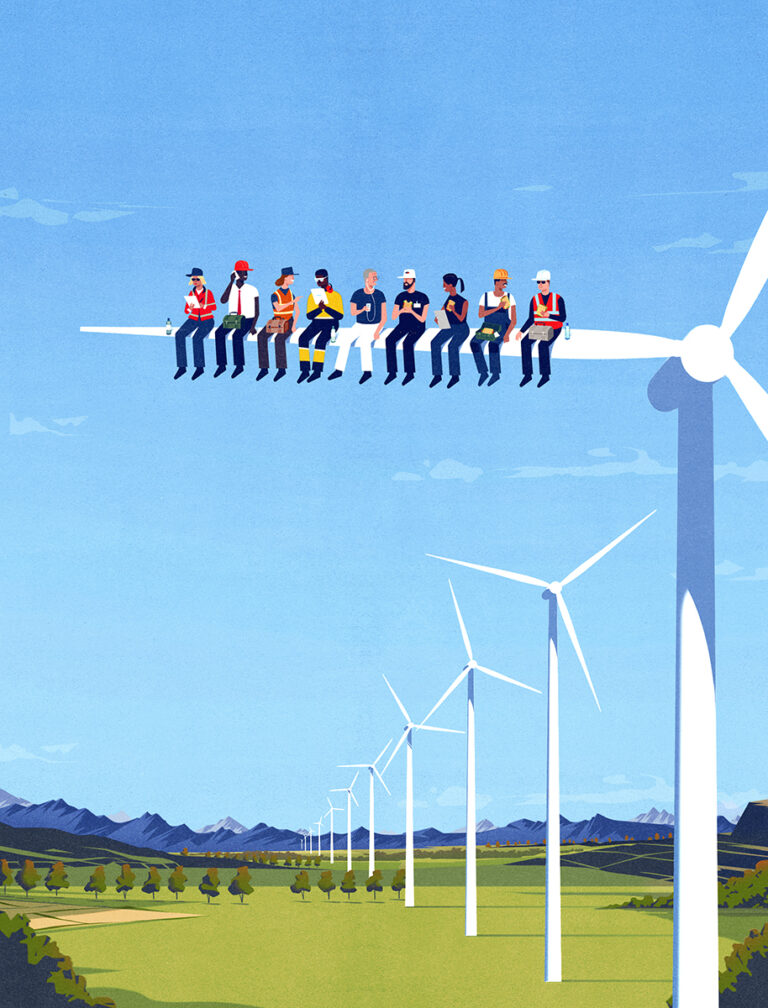 Illustration for the cover of The University of Chicago Booth School of Business magazine about the future of middle class