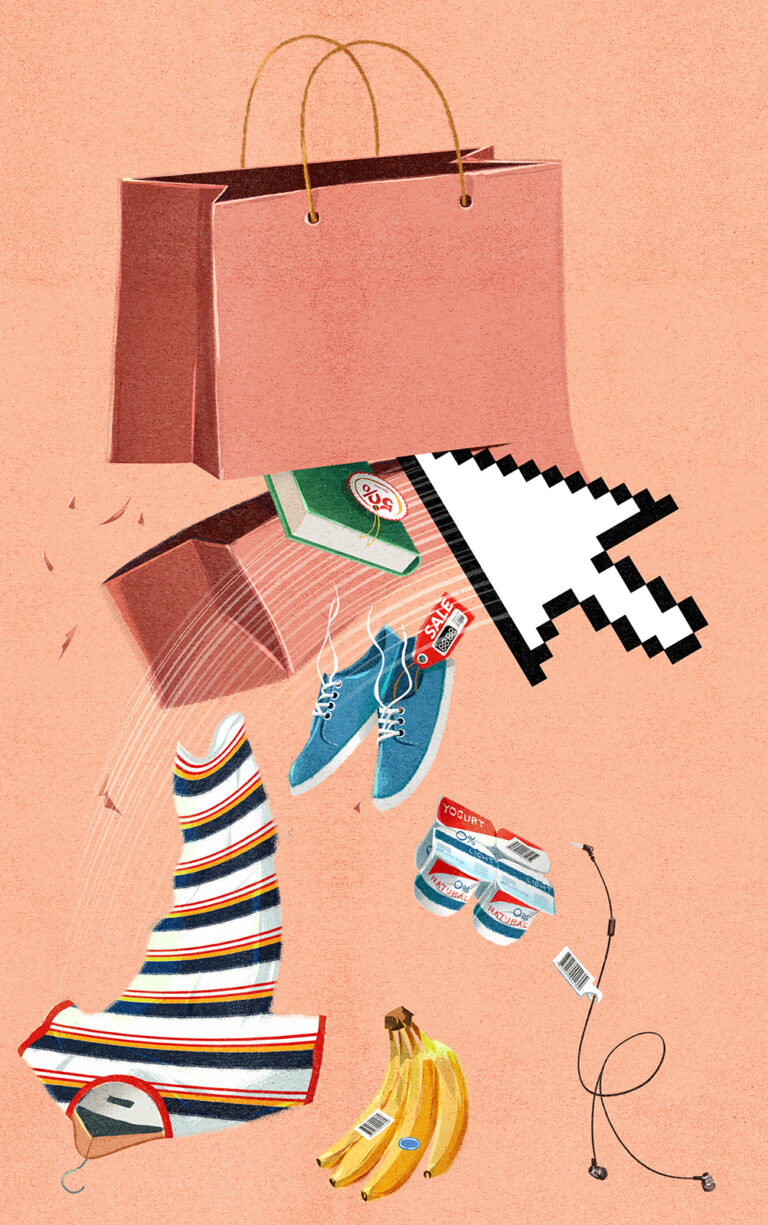 Illustration for the cover of Delano Magazine cover about online shopping and the collapse of physical retail