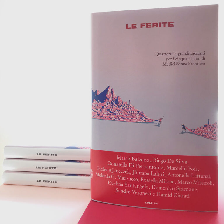 Illustration for the cover of “Le Ferite”: a book celebrating 50 years of activity of Doctors Without Borders that tells the work of the organization’s operators through 14 writers