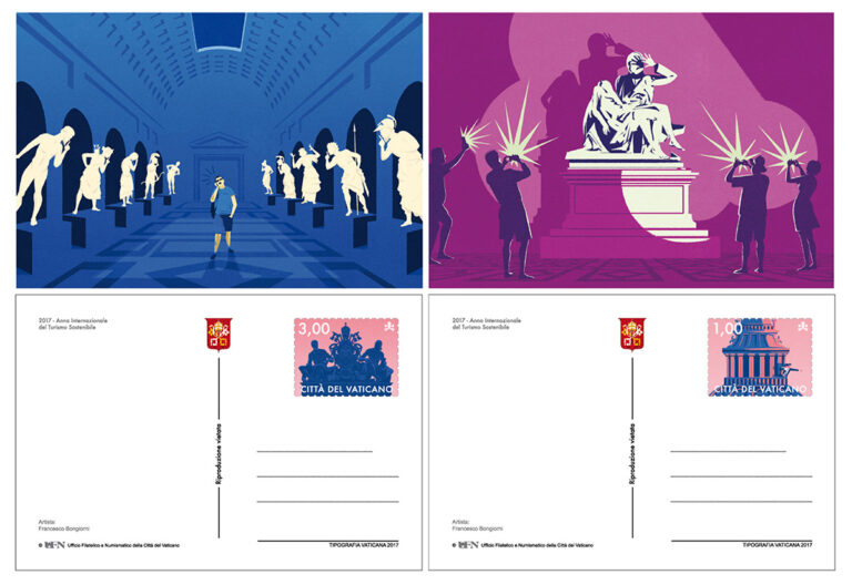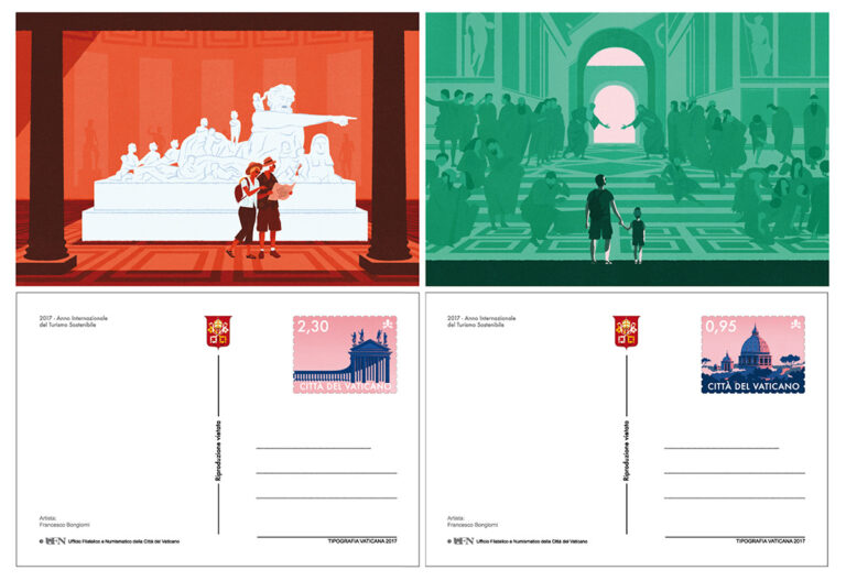 Series of Illustrations and postcards for Vatican City about the International Year of sustainable tourism, 2017