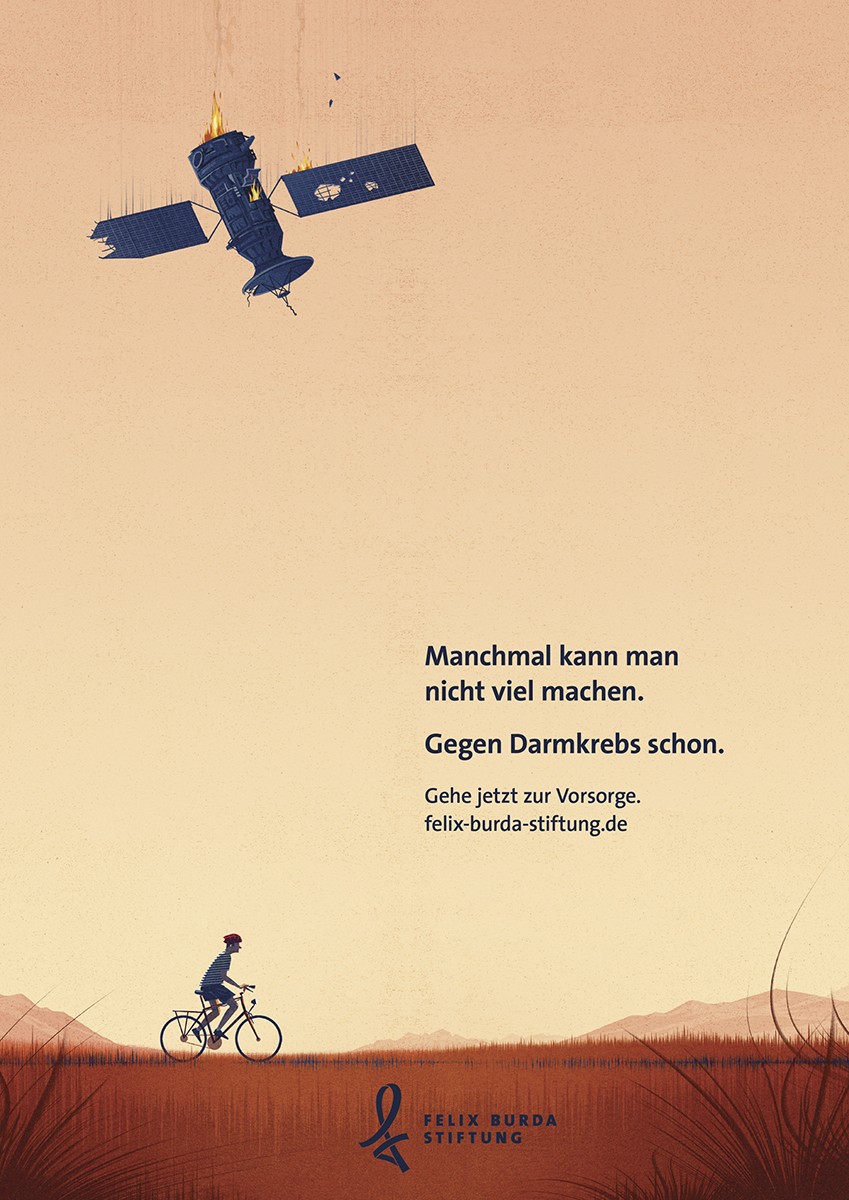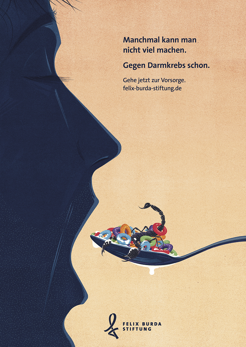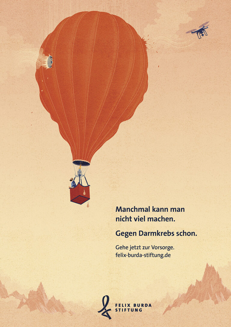 Series of Illustrations for a campaign for Felix Burda Foundation. The translated claim is: Sometimes there’s nothing you can’t do. But there are possiblities against bowel cancer. Make use of a preventive medical checkup.