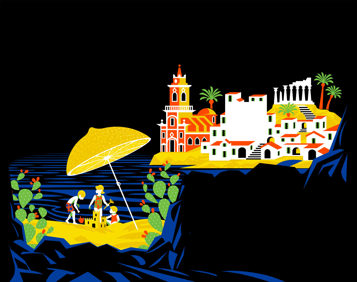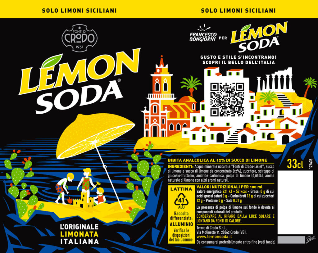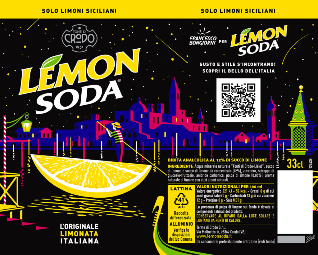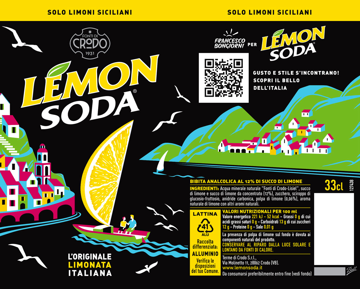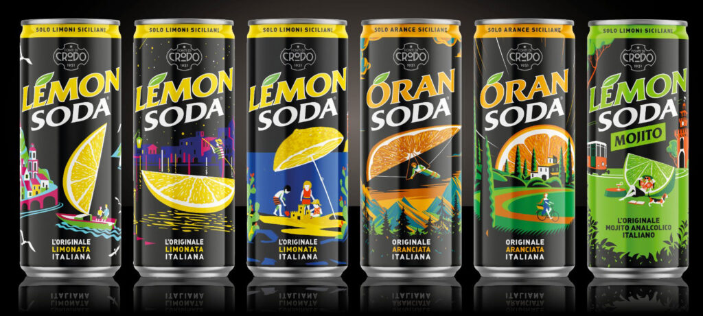 This series includes illustrations from the 2022 Special limited edition of Lemonsoda. It is a journey through the beauty of Italian landscapes represented on six cans. The design is circular and therefore the drawings wrap around the can in 360 degrees creating continuous images, each of which represents a characteristic place in Italy and its unique landscape.