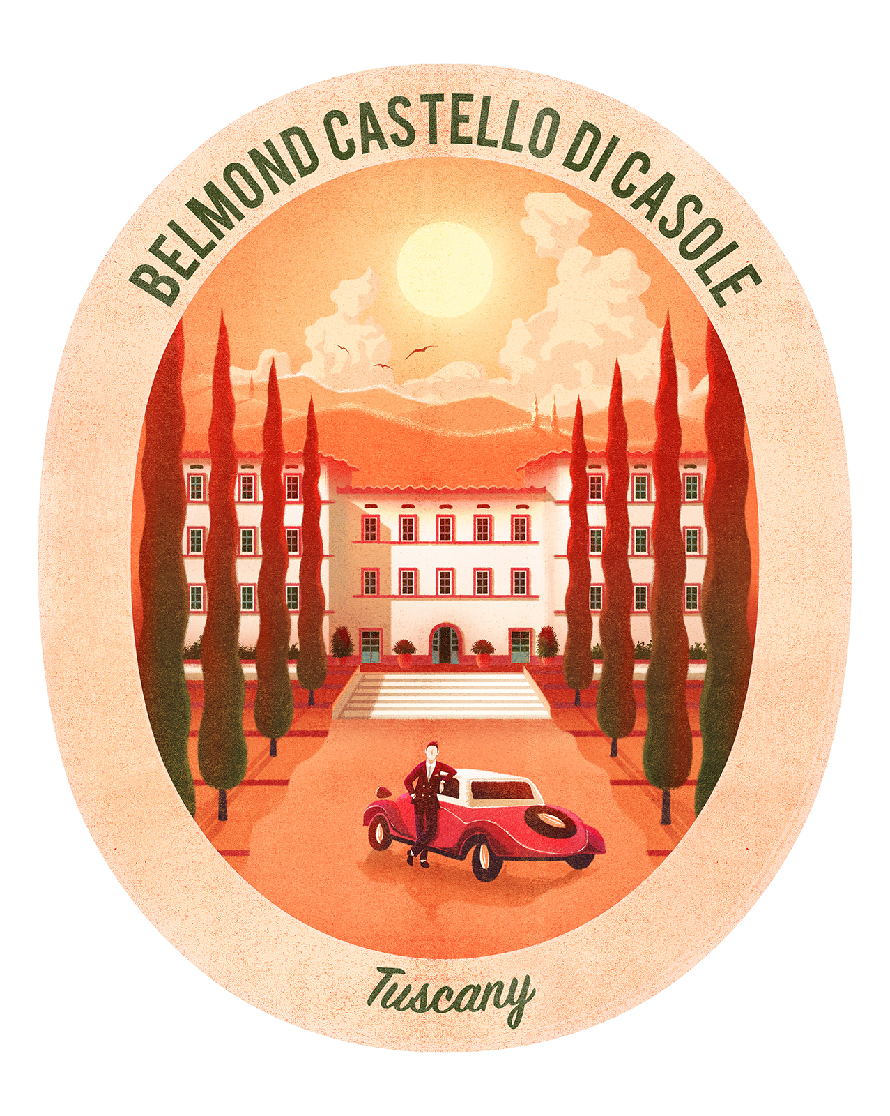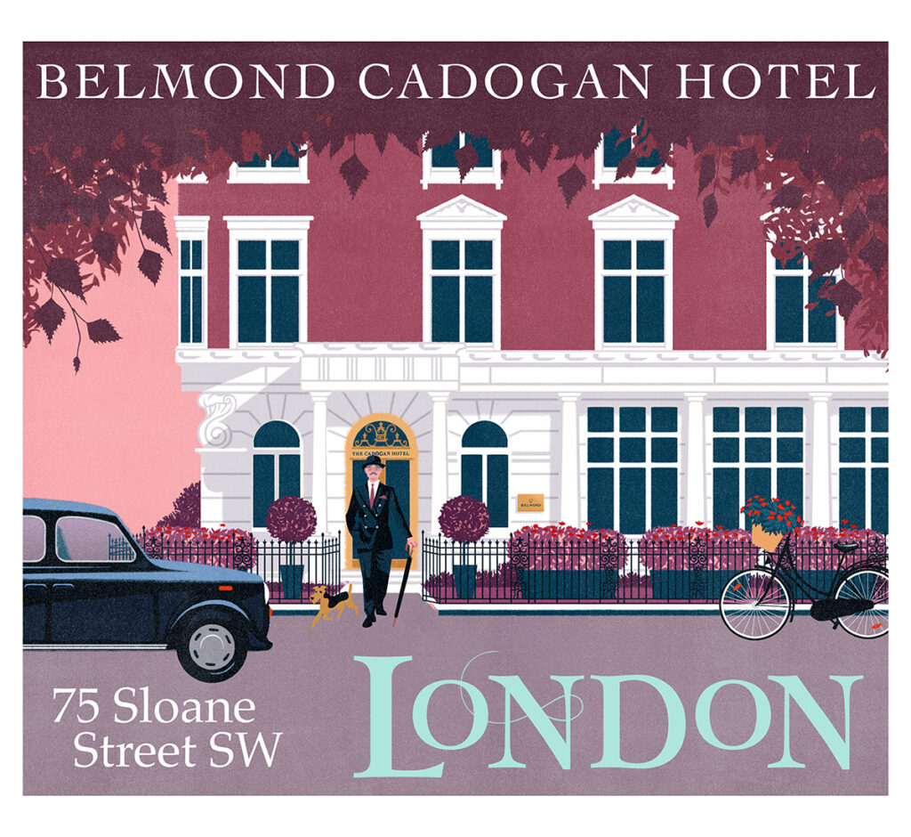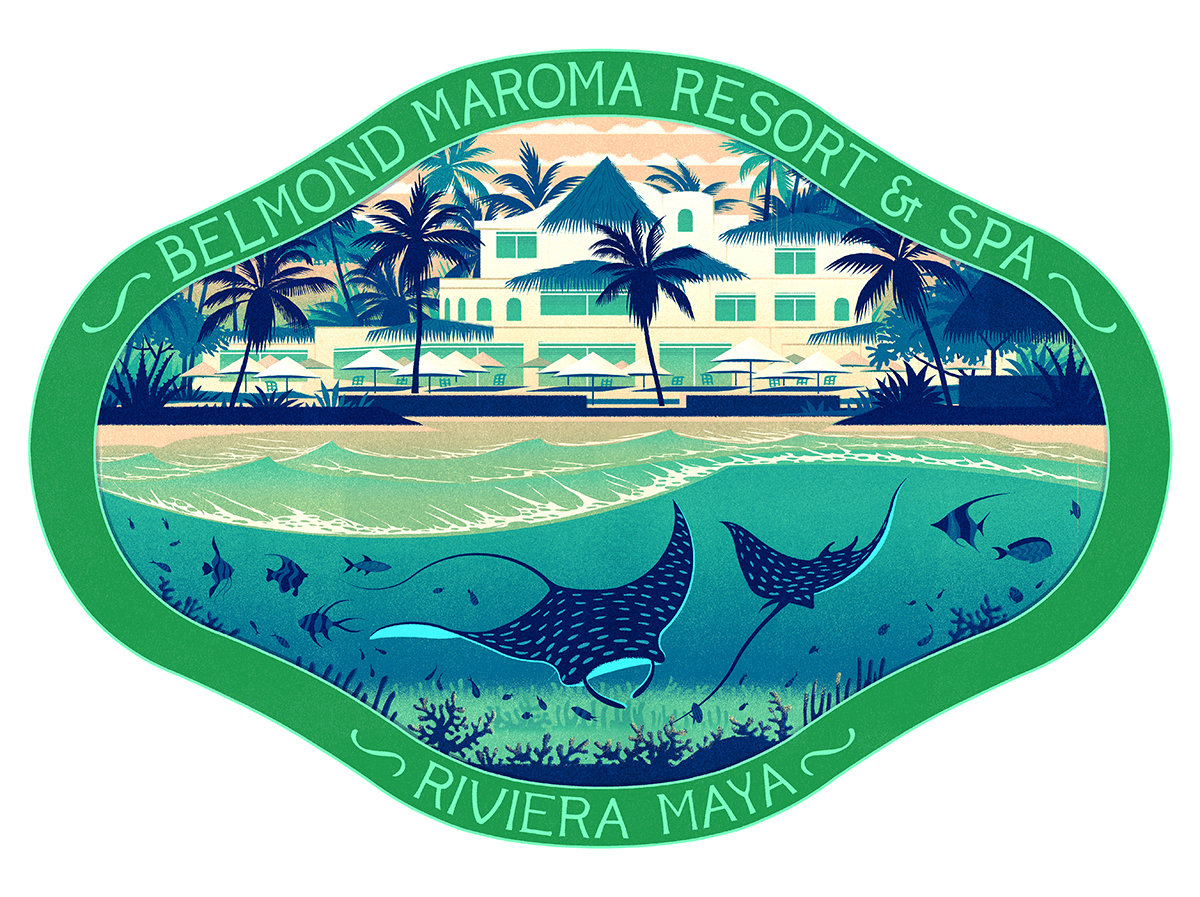 Series of travel illustration stickers about luxury hotels created for the hospitality and leisure company Belmond